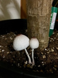 花散歩 アサガオ鉢の白いキノコ